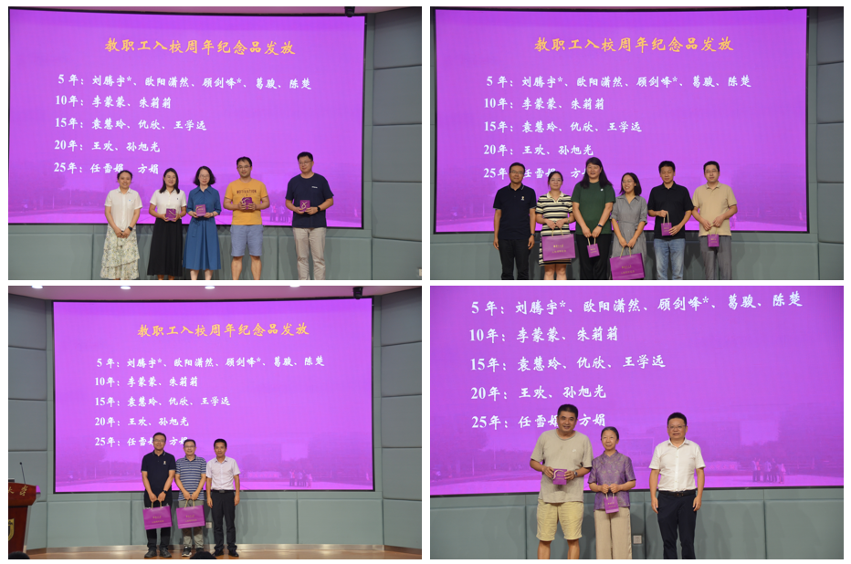 会上,4位新入职教师进行了自我介绍;公司党政领导为入校5周年、10周年、15周年、20周年、25周年的14位教师发放纪念品。