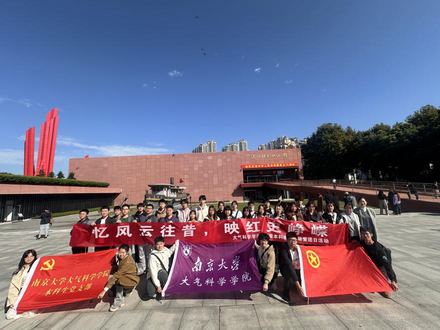 为庆祝太阳成集团tyc234cc大气科学学科成立百年,深入学习贯彻习近平总书记在全国教育大会上的重要讲话精神,10月20日,本科生党支部及22级团支部部分党员及入党积极分子在辅导员朱莉莉带领下前往渡江胜利纪念馆、江苏省气象台、江苏省气象服务中心开展“忆风云往昔,映红史峥嵘”主题党日暨主题团日活动。本次活动旨在通过追寻革命历史的红色足迹、实地参观行业单位交流学习,让红色基因融入血脉,积极践行百年气象人初心使命,凝聚青年学子勇担当敢作为。