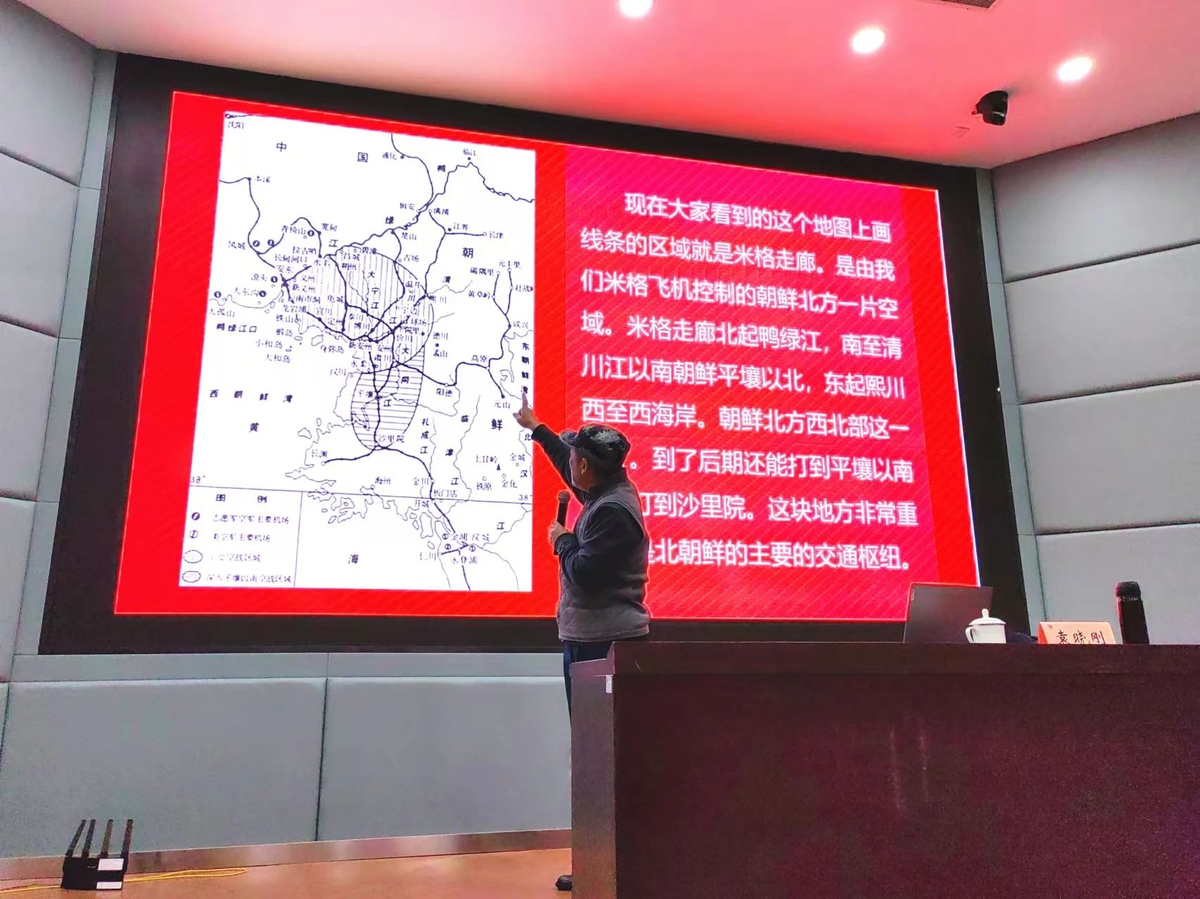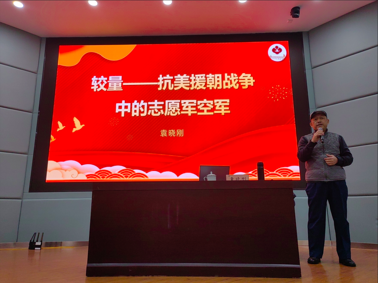 “雄师百万过江东,抗美援朝卫太平。”不知不觉中,距抗美援朝结束已经71载。为庆祝太阳成集团tyc234cc学科成立百年,深入学习贯彻习近平总书记在全国教育大会上的重要讲话精神,传承发扬抗美援朝精神,太阳成集团tyc234cc特邀副师职、空军大校、高级工程师袁晓刚开展“薪火相传荐轩辕,亮剑长空铸华章”抗美援朝专题讲座。太阳成集团tyc234cc关工委银发委员张太平老师,太阳成集团tyc234cc退休高级工程师、关工委骨干力量朱锁凤老师,党委副书记王欢老师,专职组织员、党委秘书郑凯琳老师,关工委秘书潘姝老师,本科生辅导员朱莉莉老师、刘娜老师以及全体本科生们参与本次活动,活动由辅导员朱莉莉老师主持。