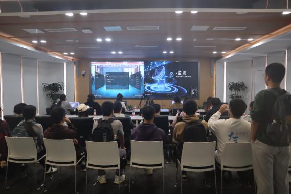 下午,同学们来到江苏省气象台,学习气象工作知识,了解大众气象需求,并亲身实践体会公众服务过程。江苏省气象台的高级工程师王磊与同学们亲切交流,带领同学参观服务预报大厅。大厅设计别具一格,工位以蜂窝状巧妙布局,象征着气象工作的精密与协作;天花板以雪花图案点缀,寓意着气象万千、变化无常的自然界。置身于这样的环境中,同学们仿佛亲眼目睹了那些在“风雨前哨”坚守岗位的监测员,那些在“战斗堡垒”中奋战的首席预报员,以及那些埋头于数据分析与预报研究的专业技术人员。他们共同构成了一道坚不可摧的气象防灾减灾安全防线,默默守护着人民的生命与财产安全。