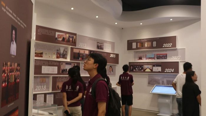 同学们首先在校史馆前合影留念,定格这一充满意义的时刻,随后进入馆内和讲解员一起参观。大家穿梭于充满历史韵味的展厅,跟随墙面上一幅幅照片与一段段文字,回溯公司自两江师范学堂起步,历经多次变迁,直至今日的辉煌历程。馆内陈列的毕业文凭、签名档案等珍贵实物,让同学们深切感受到南大深厚的办学传统与文化积淀。重要人物与历史事件的展示,也生动传递出历代南大人的精神与风骨。