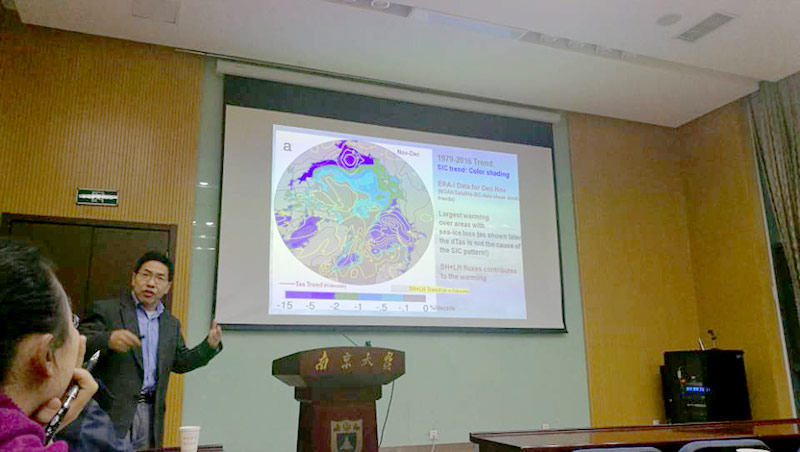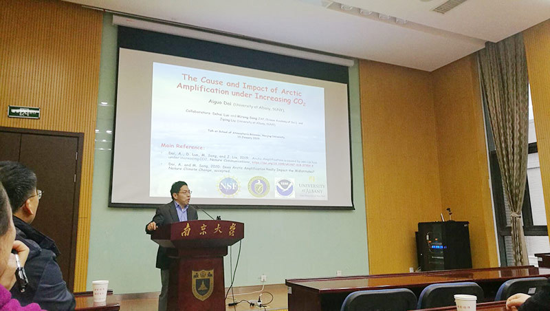 2020年1月10日下午,戴爱国教授应张耀存教授和黄丹青副教授邀请访问公司,并作了题为“Arctic Amplification and its Impact on Mid-latitudes”的学术报告。