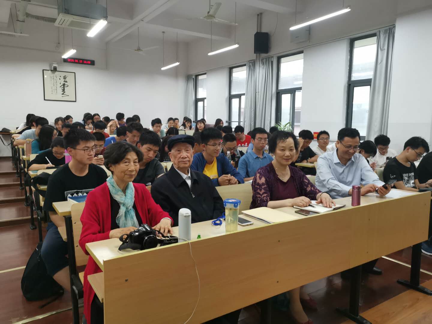 最后,邹老先生建议同学们要发扬两弹一星精神,努力奋斗,为国争光。讲座结束之前他反复对同学们说欢迎同学们提出问题并和他交流,这种对后辈的竭力帮助是两弹一星精神最好的传承。面对同学们的鼓掌,邹老先生不断鞠躬,他谦虚和蔼的态度令人肃然起敬。邹老先生最终在大气公司老师们的搀扶下离去,留给同学们一个高耸的背影。