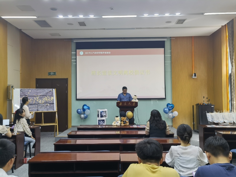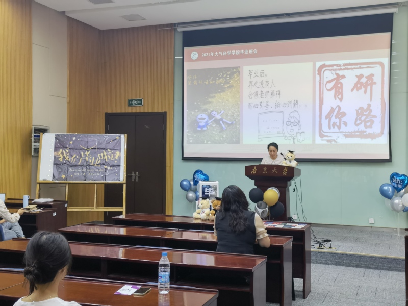 班会上,辅导员李佳老师带领全体毕业生回顾了在校期间参加各类活动的场景,重温了研究生的青葱岁月。李老师希望同学们在毕业后勇敢的面对来自生活和工作的挑战,叮嘱大家常回来看看,母校是大气学子有力的依靠,大气学子亦是南大未来的骄傲。同时,她也祝福同学们身体健康、事业顺利、家庭美满、前程锦绣!