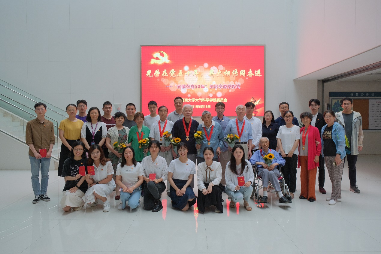 在建党百年之际,公司有14位老师获此殊荣,其中,庄荫模、蒋龙海、蒋维楣、刘开成、朱锁凤、周德佩、张学儒7位老党员莅临颁发仪式现场。教职工党员和员工党员代表共40余人参加了本次仪式,仪式由党委副书记喻春红主持。