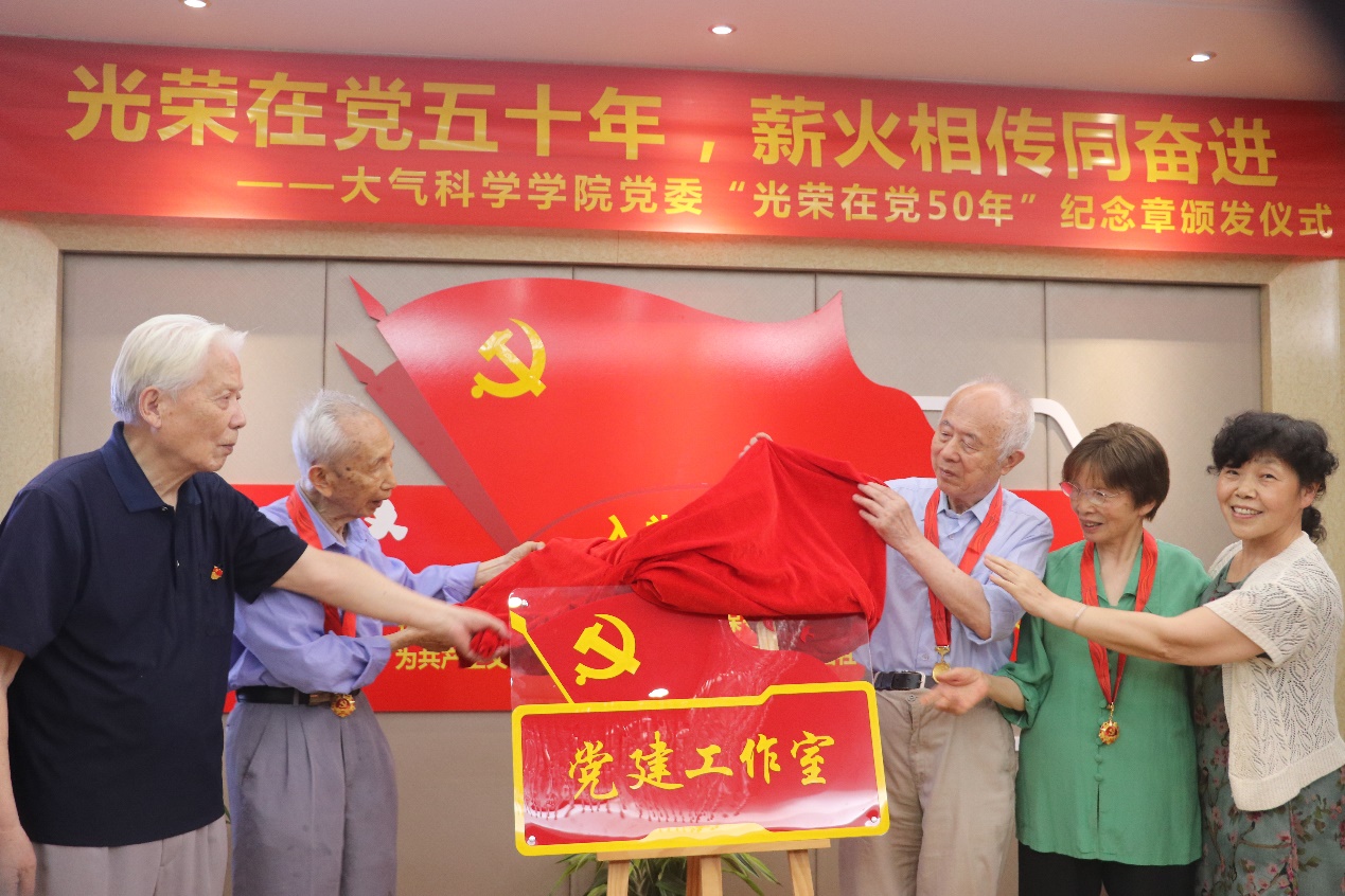 老党员和教职工党员共同为党建工作室揭牌。