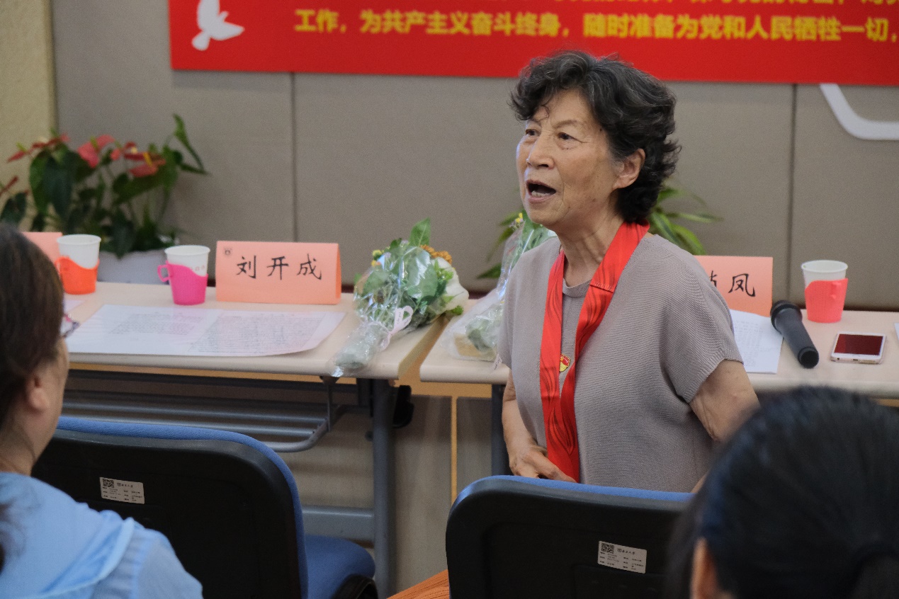 活动的最后,老党员们为大家分享了他们的入党故事,诉说了对党的深情。老师们说,感谢党和人民的培养,党旗永远在心中高高飘扬,永远会用自己的行动诠释党的宗旨与使命。