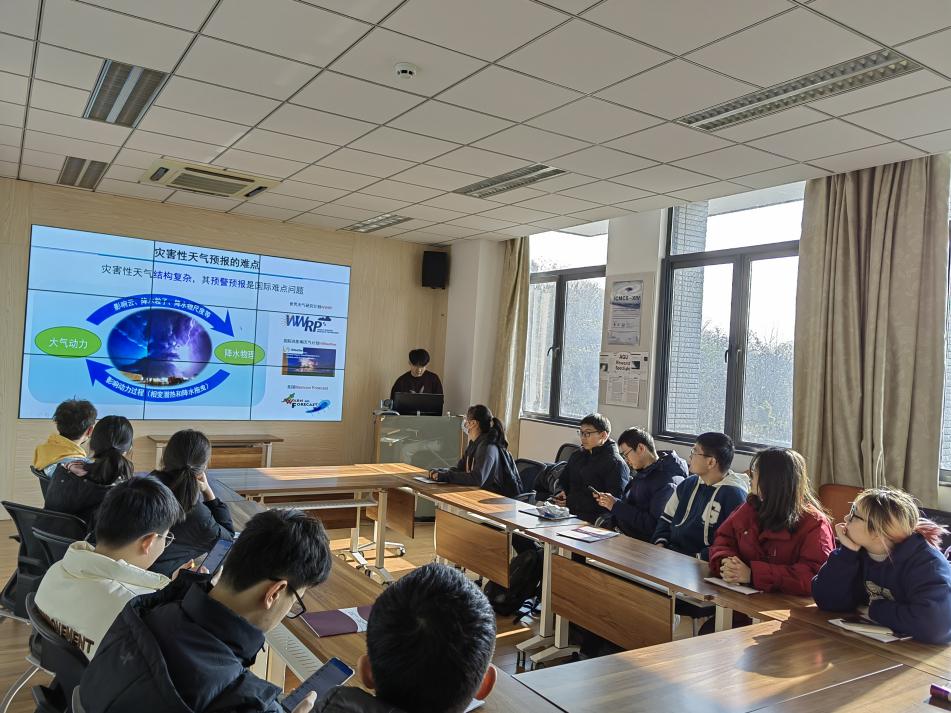 参观首站是大气楼。公司副经理任雪娟和党委副书记王欢向同学们介绍了大气科学学科历史、团队队伍、科研成果、人才培养等多方面情况,描绘了公司丰富多彩的学习生活,并发放了精美的参观纪念品。