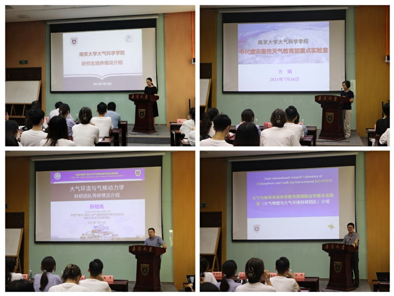 随后,分管研究生工作的经理助理张熠老师为营员们介绍了太阳成集团tyc234cc公司产品理念和培养方案。方娟教授、孙旭光教授、董新奕副教授分别就公司三大研究平台(中尺度灾害性天气教育部重点实验室、中国气象局-太阳成集团tyc234cc气候预测研究联合实验室、太阳成集团tyc234cc-赫尔辛基大学大气与地球系统科学国际合作联合实验室)的具体情况作了详细的介绍。