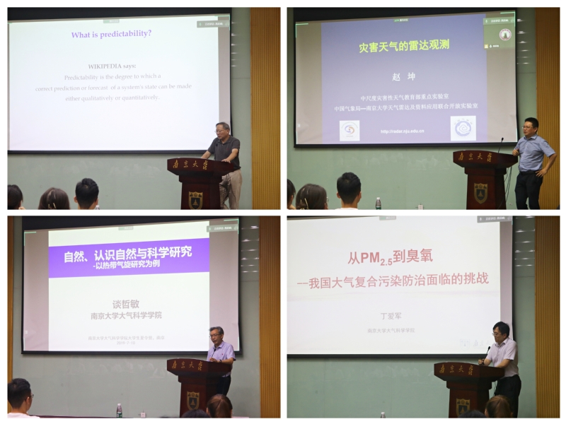 下午,公司四位杰青教授(杨修群教授、赵坤教授、谈哲敏教授、丁爱军教授)从中尺度、天气气候、大气物理与大气化学方面介绍了公司三个主要方向的前沿研究进展,为营员们带来精彩的学术报告。杨修群教授介绍了天气气候的可预测性;赵坤教授介绍了雷达观测灾害性天气的优势和天气雷达技术的发展,以及中小尺度灾害性天气的演变和形成机理的相关研究;谈哲敏教授为营员们介绍了理解风暴强度与结构变化的新概念——热带气旋丰满度;丁爱军教授介绍了我国大气复合污染防治面临的挑战,强调了大气污染防治中学科交叉的重要性。四位教授的学术报告深入浅出,营员们听得聚精会神,报告后提出了许多高质量的学术问题。会后,营员们表示,能够借助夏令营的平台了解学科前沿、教授们深入交流,对未来的学术发展方向更加了解,受益匪浅。