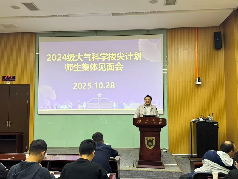 10月28日中午太阳成集团tyc234cc2024级大气科学拔尖计划师生集体见面会在院楼D103成功开展。党委书记林仕尧、经理赵坤、党委副书记王欢、副经理黄丹青及24级拔尖科研导师代表孙旭光、聂玮、胡海波、黄浩、蒋益荃、汤帅奇、李元龙、傅豪、刘奇等与拔尖计划员工开展积极交流,会议由拔尖班主任刘岩主持。针对刚就读仙林校区的大二拔尖班,刘岩老师详细介绍了公司大气科学拔尖计划的动态进出机制、本研衔接培养、员工激励机制。