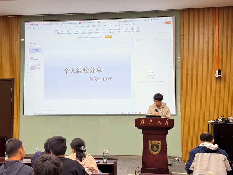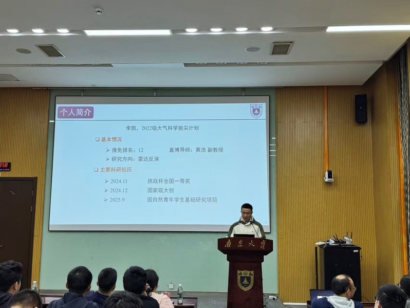 经理赵坤以“拔尖人才培养的机遇与担当”为主题,从团队力量、科研平台、开放合作、育人氛围等方面介绍了公司的情况。针对拔尖计划,公司将为拔尖学子提供“一对一”的优秀青年老师进科研指导;希望大家利用公司“国字号”科研平台进行扎实的科研训练;希望同学们通过国际科考等不断拓展国际化视野。他寄语新一级大气拔尖学子在南大大气学科百年积淀的沃土中,发挥智慧,不断成长,创造无限可能。