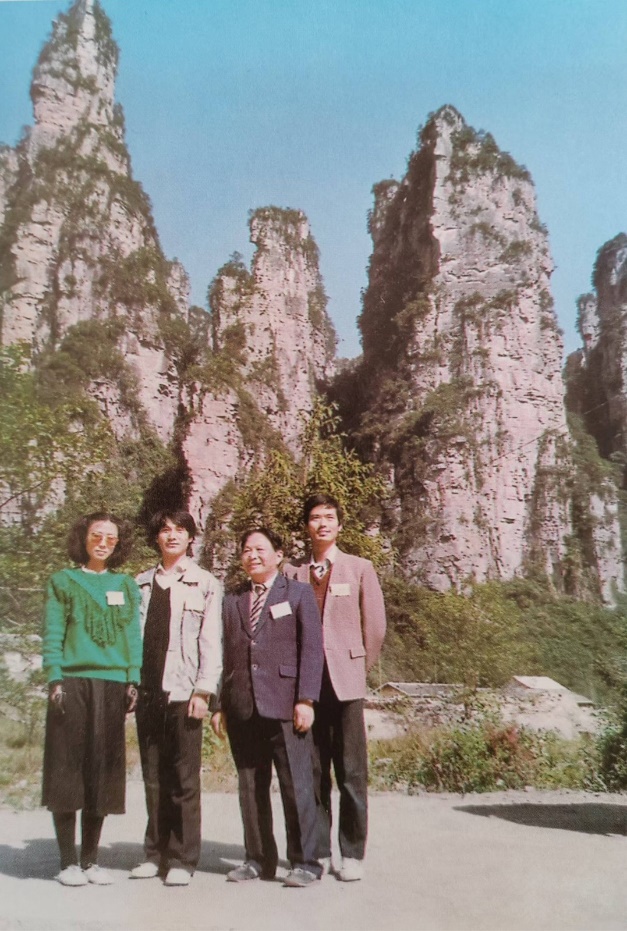 1991年10月在张家界参加“全国山地气候资源与开发利用”学术会议(右二傅抱璞先生与博士生于强右一,左二孙汉群,左一齐瑛)