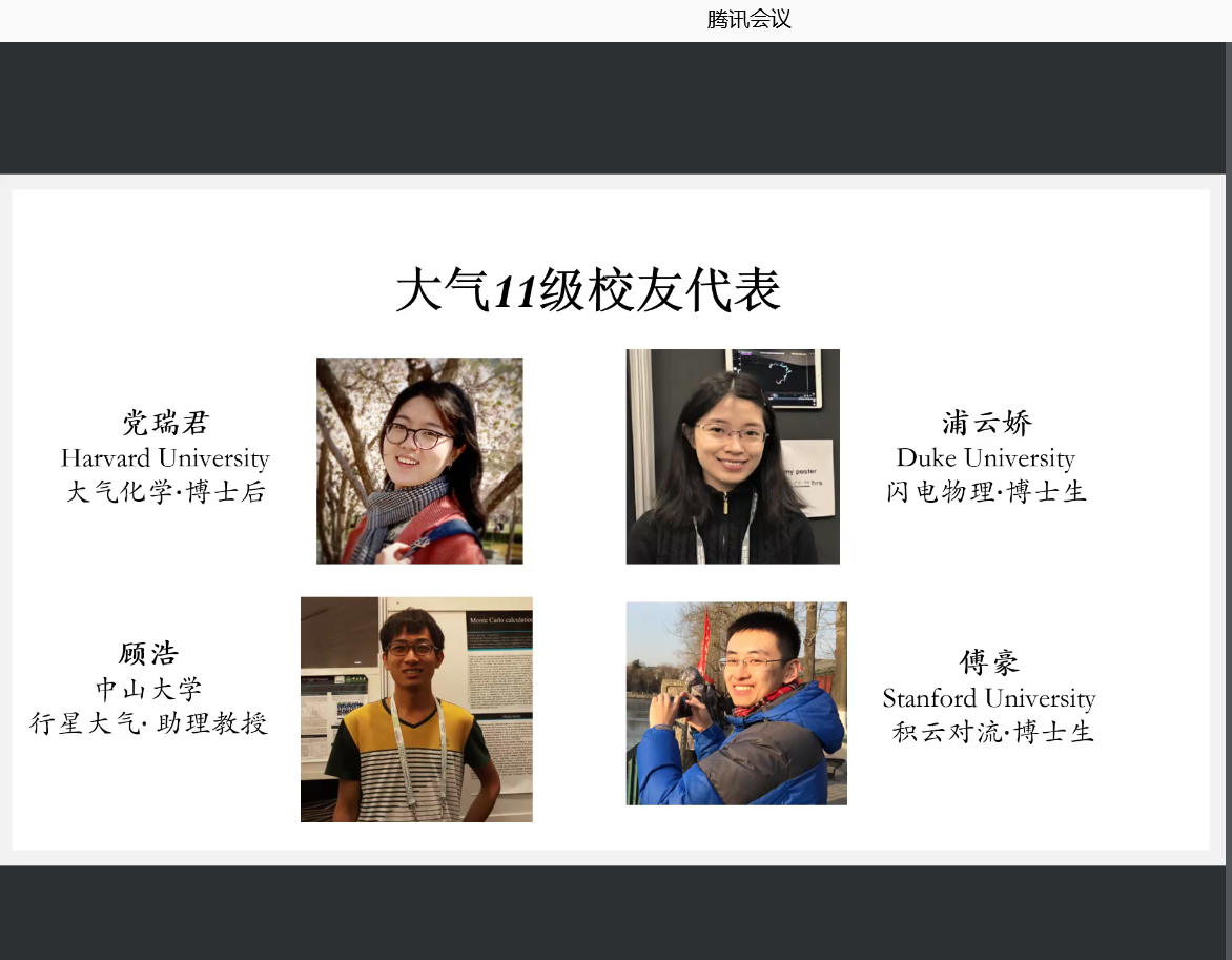为进一步增强公司本科生对大气科学的深入了解,开阔国际视野,2021年8月28日上午,太阳成集团tyc234cc公司党委通过腾讯会议的线上交流形式,邀请了四位2011级优秀员工通过线上学术报告结合互动交流的形式介绍各自的学习经历和科研方向,70余名2018级、2019级和2020级本科生在线参与了本次活动,公司党委书记潘益农、党委副书记喻春红参与活动并发言;党委秘书、2011级本科生辅导员郑凯琳、2020级本科生辅导员毕菲菲和员工工作秘书潘姝参加了本次活动。
