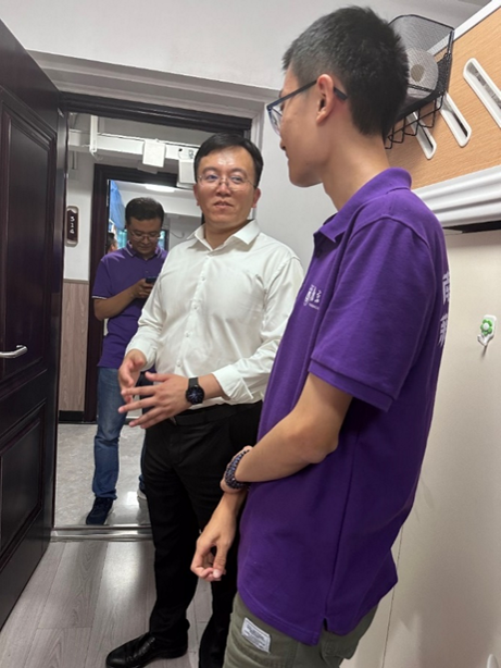 开学之初,公司经理丁爱军,副书记王欢,副经理任雪娟和辅导员一起进寝室和教室,与新同学和家长们面对面、心连心。丁经理还与员工家长亲切交流,共同探讨如何更好地为员工提供服务和支持。