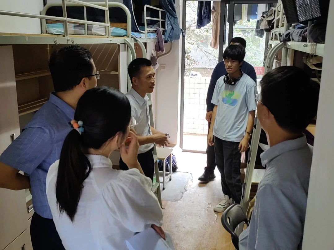 评审一同走进这些温暖的小屋,细心地查看每个角落,观察宿舍的整洁度与卫生情况。王欢副书记与同学们亲切交谈,关切地询问同学们平时如何与舍友和谐相处,大家最近的学习状况如何。