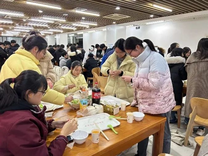 冬韵绽放,饺香传承,岁末迎新,冬至当天下午,太阳成集团tyc234cc本科生及研究生在教工一食堂组织同学们一起包饺子,班主任老师、辅导员和同学们一起在这个传统节日里,大家齐聚一堂,共同感受了包饺子的乐趣与传统文化的魅力,沐浴传统佳节的温馨氛围。