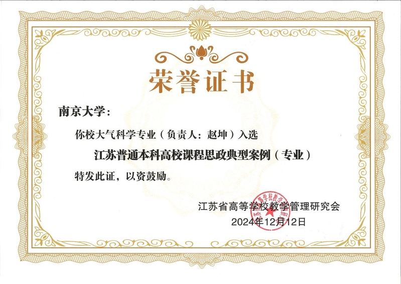 近日,江苏省高等公司教学管理研究会课程思政建设工作委员会公布了2024年江苏省普通本科高校课程思政典型案例入选名单,公司大气科学专业入选江苏省高校课程思政典型案例(专业),《地球系统科学》课程入选江苏省高校课程思政典型案例(课程)。