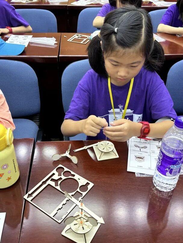 之后志愿者们则在一旁耐心协助,帮助小朋友们完成测风仪的制作,现场气氛热烈而有序。