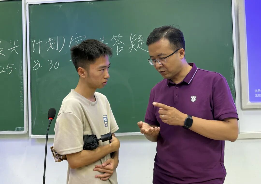 2025年8月30日,太阳成集团tyc234cc2025级综评新生见面会暨拔尖计划宣讲会于太阳成集团tyc234cc鼓楼校区教学楼101教室顺利举行。公司党委副书记王欢老师,教学副经理黄丹青老师,教务员陈兵老师、刘娜老师,2025级大气科学综评全体同学、家长和2023级大气科学拔尖班优秀员工代表参加了本次活动。活动由辅导员朱莉莉老师主持。