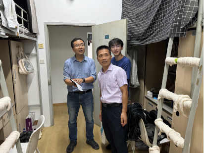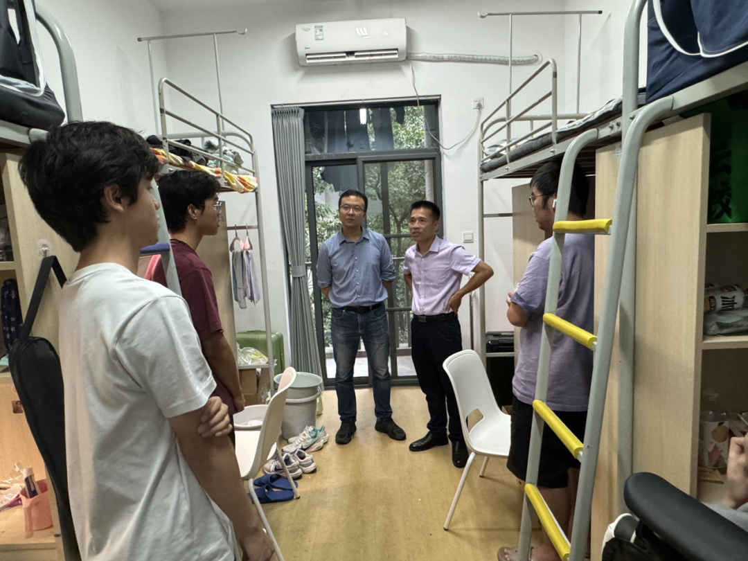 9月25日下午,林仕尧书记、赵坤经理、王欢副书记、庄炳亮经理助理及朱莉莉辅导员带着公司慰问物资,在员工会主席团的陪同下走进了23级和24级男生宿舍。