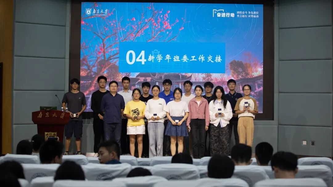 邱博老师为老班委们送上精心准备的南大书签作为纪念礼物,感谢他们过去一年里为班级建设的辛勤付出与无私奉献;随后,朱莉莉老师与陈兵老师共同为新一届班委颁发班委聘书,在全场的掌声中,新班委接过责任接力棒,正式开启服务班级的新旅程。