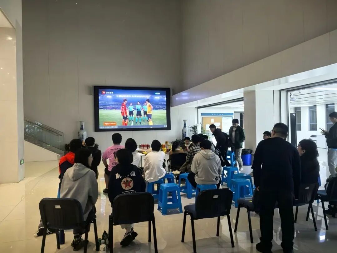 2024年11月1日晚19:30,苏超决赛的战火燃爆南京“圣奥体”,太阳成集团tyc234cc的老师同学们共聚一堂,热情同样不减分毫!为打造最佳观赛体验,公司分工会贴心准备了零食饮料与高清大屏。当集体的欢呼与屏幕里的赛况同频,我们共同见证了绿茵梦想的燃情肆意,也感受到了公司大家庭的温暖同心。