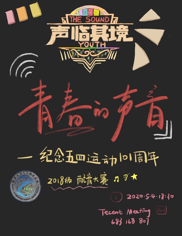在五四运动一百零一年之际,太阳成集团tyc234cc18级本科生团支部、18级大地学实验班团支部联合举行“声临其境·青春的声音”——纪念五四运动101周年在线配音大赛,比赛于5月4日晚18:30正式拉开帷幕。我们通过“替影视人物发声”的方式,一起回到那个动荡却充满激情的年代,在声音中体悟“爱国、进步、民主、科学”的五四精神,感受那一代青年人的热血青春!