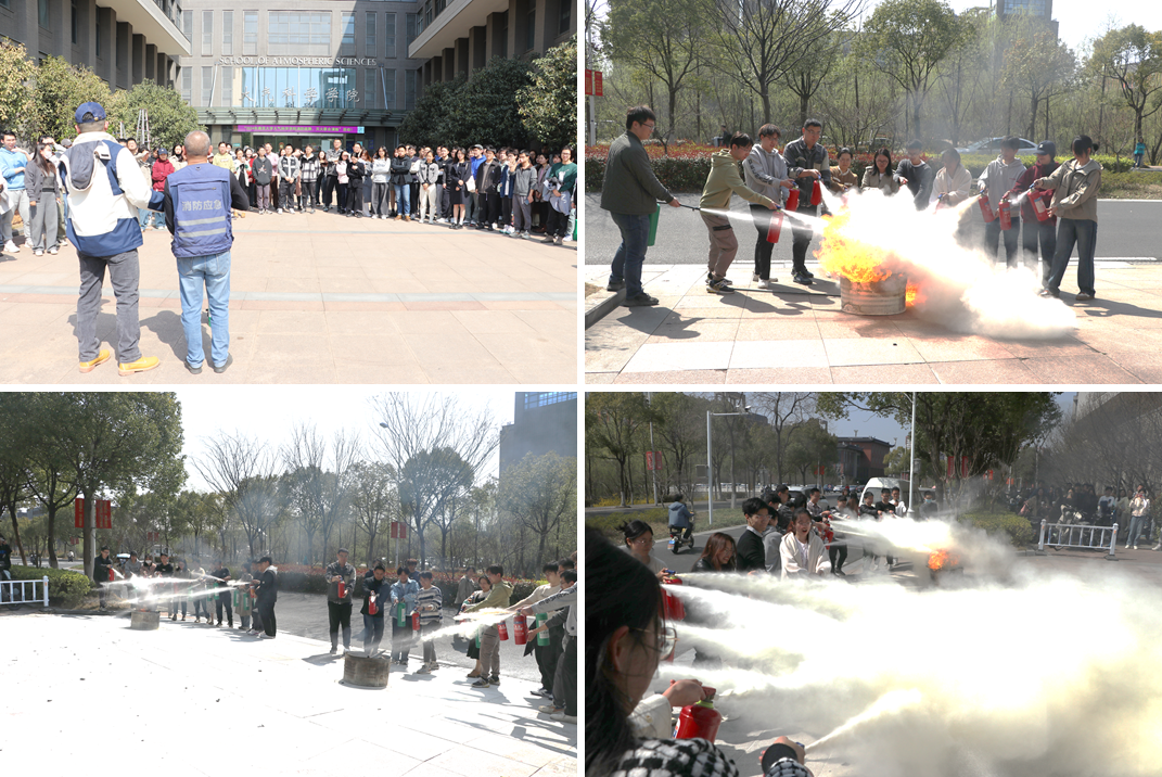 随后,校保卫处防火综治科老师给全体师生详细介绍了灭火器的种类及使用方法。师生员工们纷纷踊跃参加现场灭火实战化演练,学习干粉和水基两种灭火器的使用和扑灭初起火灾的方法。
