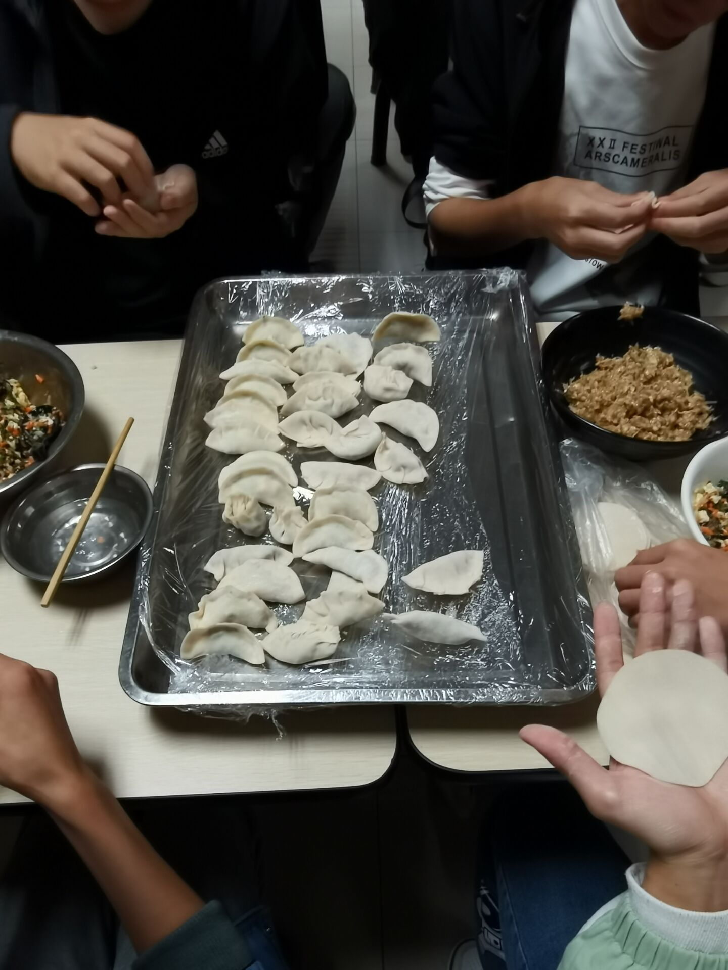 随着每一桌都摆上了丰富多样的饺子的馅料,大伙儿已经摩拳擦掌,迫不及待地要各显神通了。同学们有的手法娴熟、气闲笃定,有的现学现试、认真投入,有的嬉闹可爱、别出心裁,一个个不甘示弱,忙得不亦乐乎,包出来的饺子也是千奇百怪,各具特色,有的还以叉烧,包子的形式出现。此刻,大家在平时紧张的学习工作中得到了放松,脸上露出愉悦的笑容。