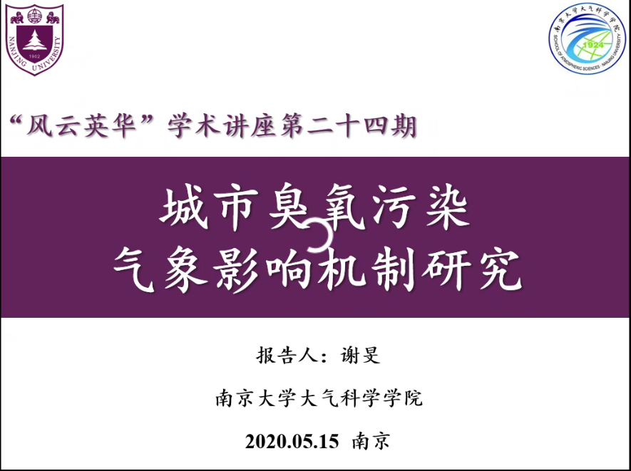 2020年5月15日上午,公司谢旻副教授作了题为“城市臭氧污染的气象影响机制研究”的风云英华讲座。