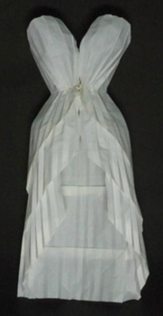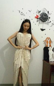 黄晓娴还曾设计一张方纸折成的百褶晚礼服,用边长1.6米的珠光色正方形卡纸试做成人可穿尺寸;又用相同大小的薄纸折了一件,向国际女装品牌ArdAzAei伊朗裔创始人兼创意总监Bahareh Ardakani女士展示。她十分欣赏黄晓娴的才能,并邀请她参与了服饰褶皱设计,以及法国巴黎时装周高级成衣发布会;Bahareh Ardakani女士还收藏了黄晓娴的一纸成型《孔雀开屏》,悬挂于瑞典斯德哥尔摩的工作室。
