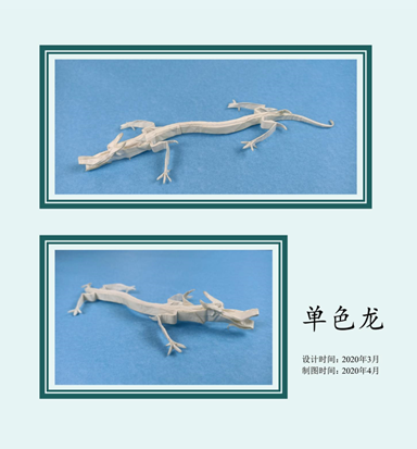 图为黄晓娴创作的“单色龙”和“双色龙”折纸模型