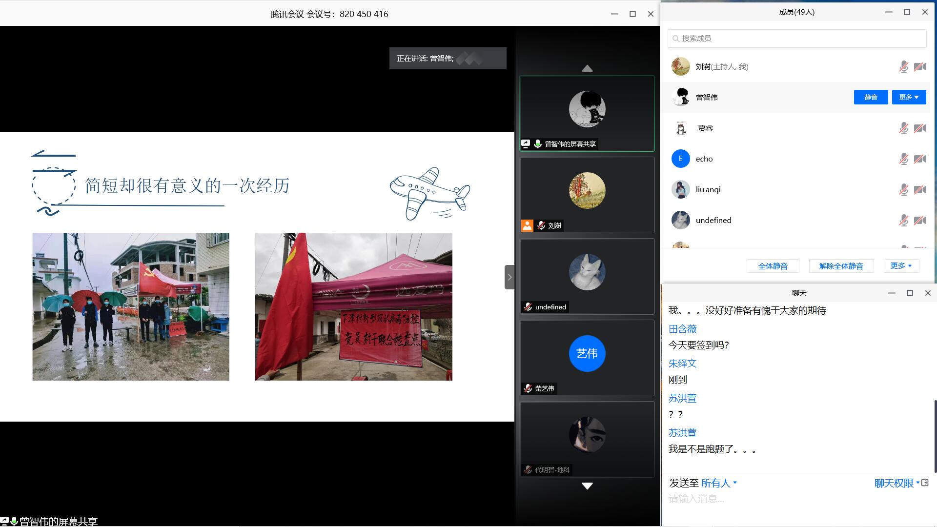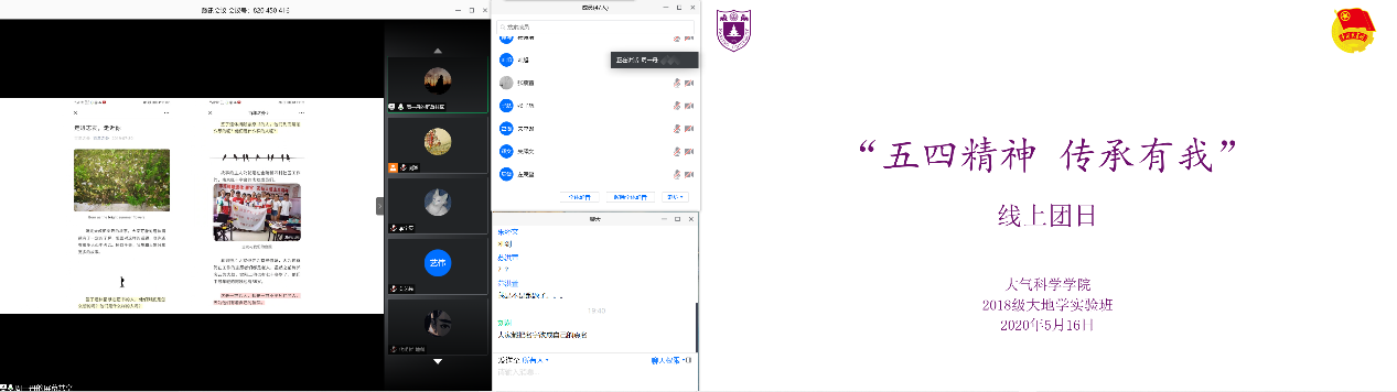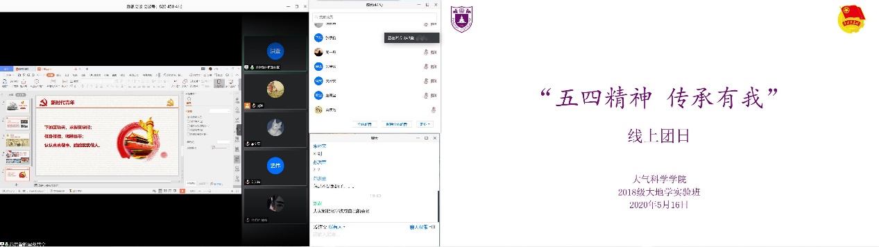 5月16日晚,我支部通过腾讯会议平台开展了“五四精神 传承有我”主题线上团日活动,邀请疫情期间参加抗疫工作以及获得本年度“两红两优”称号的支部成员进行个人事迹分享,全体支部成员共同学习,通过了解身边的先进事迹,坚定理想信念,体会五四精神的含义。