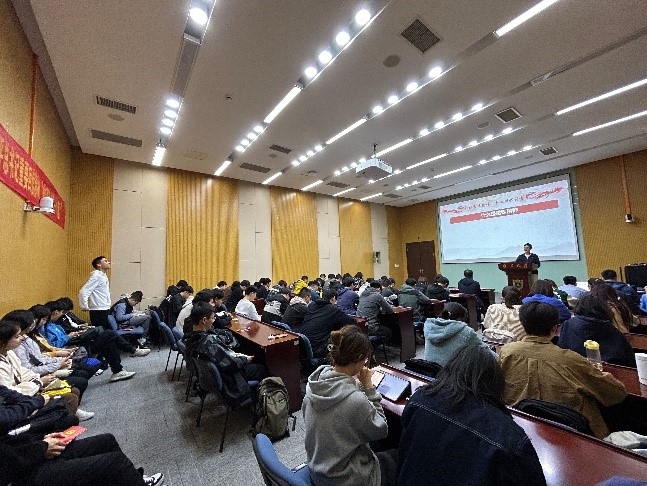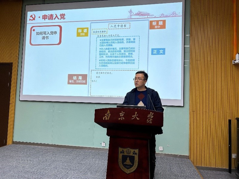 活动开始,党委副书记王欢受邀作了《规范党员发展程序,提高党员发展质量》主题报告,向同学们细致介绍了入党具体流程,提醒大家申请材料书写要点及入党流程有关注意事项,鼓励同学们坚定理想信念、端正入党动机,在学思践悟中强化理论修养,提高政治站位。
