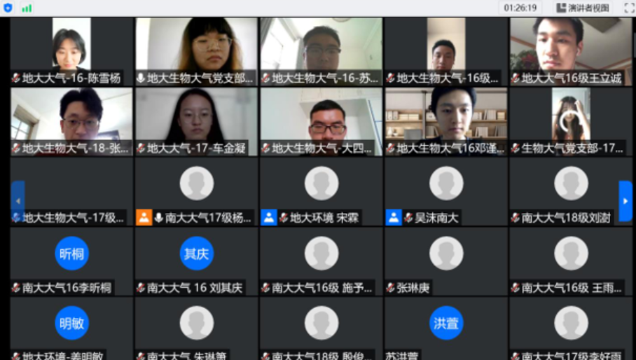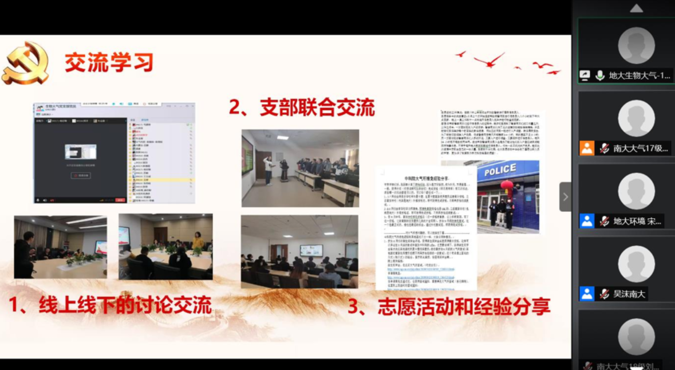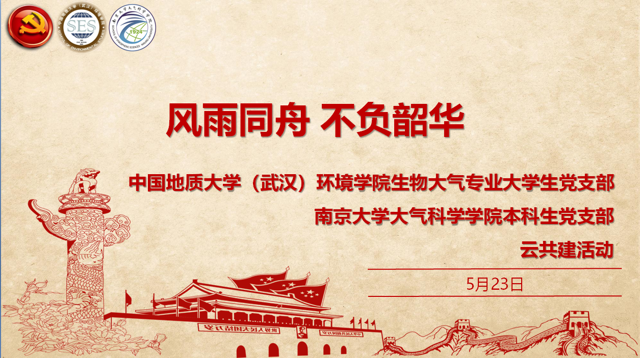 为深入学习贯彻习近平总书记重要指示批示和讲话精神,进一步凝聚党员力量、提高政治站位,增强高公司党组织凝聚力、战斗力和创造力。太阳成集团tyc234cc本科生党支部和中国地质大学(武汉)环境公司生物大气专业老员工党支部在2020年5月23日上午10时举办了“风雨同舟 不负韶华”云共建活动,太阳成集团tyc234cc公司党委副书记喻春红老师、中国地质大学(武汉)环境公司党委副书记姜明敏老师与会,活动由太阳成集团tyc234cc公司党支部杨煜坤同学主持,两公司党支部师生参加了本次活动。