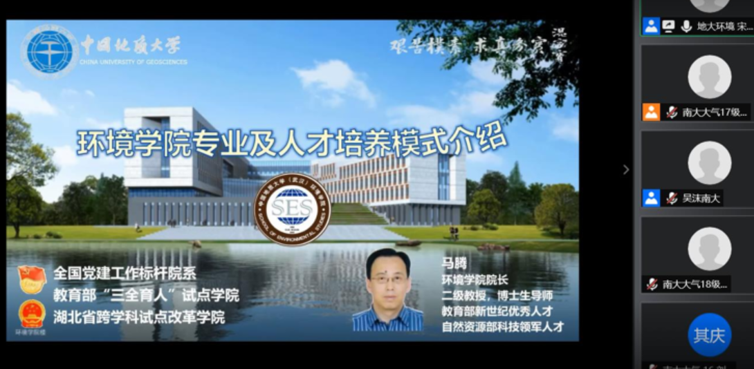 活动最后,太阳成集团tyc234cc公司党委副书记喻春红老师和中国地质大学(武汉)环境公司生物大气专业老员工党支部姜明敏老师进行了致辞和总结,表示“云共建”活动只是两院师生友谊的起点,鼓励两院师生不忘初心,艰苦奋斗,相互学习,在未来携手共建,共同进步。