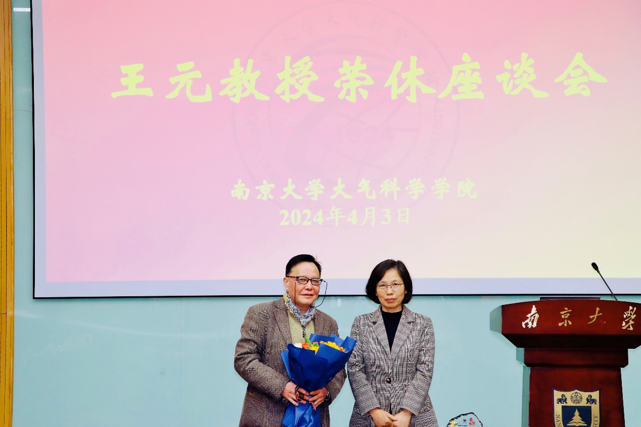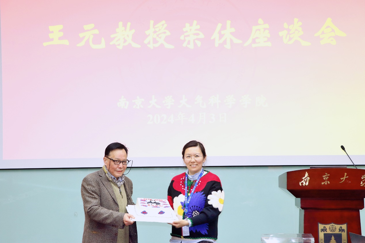 教师代表、中尺度灾害性天气教育部重点实验室主任方娟教授以及王元老师的员工们为他送上鲜花,祝福王元老师幸福安康!