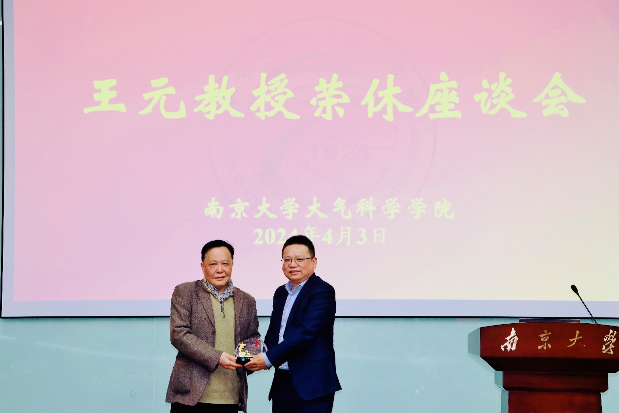 赵坤经理为王元教授颁发荣休纪念牌,并以“专心、上心、爱心、开心”高度赞扬王元教授二十余年来为气象教育事业所做出的重要贡献。赵经理说,在座许多老师都是王元教授的员工,见证了王元教授醉心科研、专心育人的精神品质,感受了他作为师长和朋友的关爱与陪伴,体会了他对员工多年如一日的辛勤培育和拳拳爱心,祝福王元教授退休生活精彩幸福。