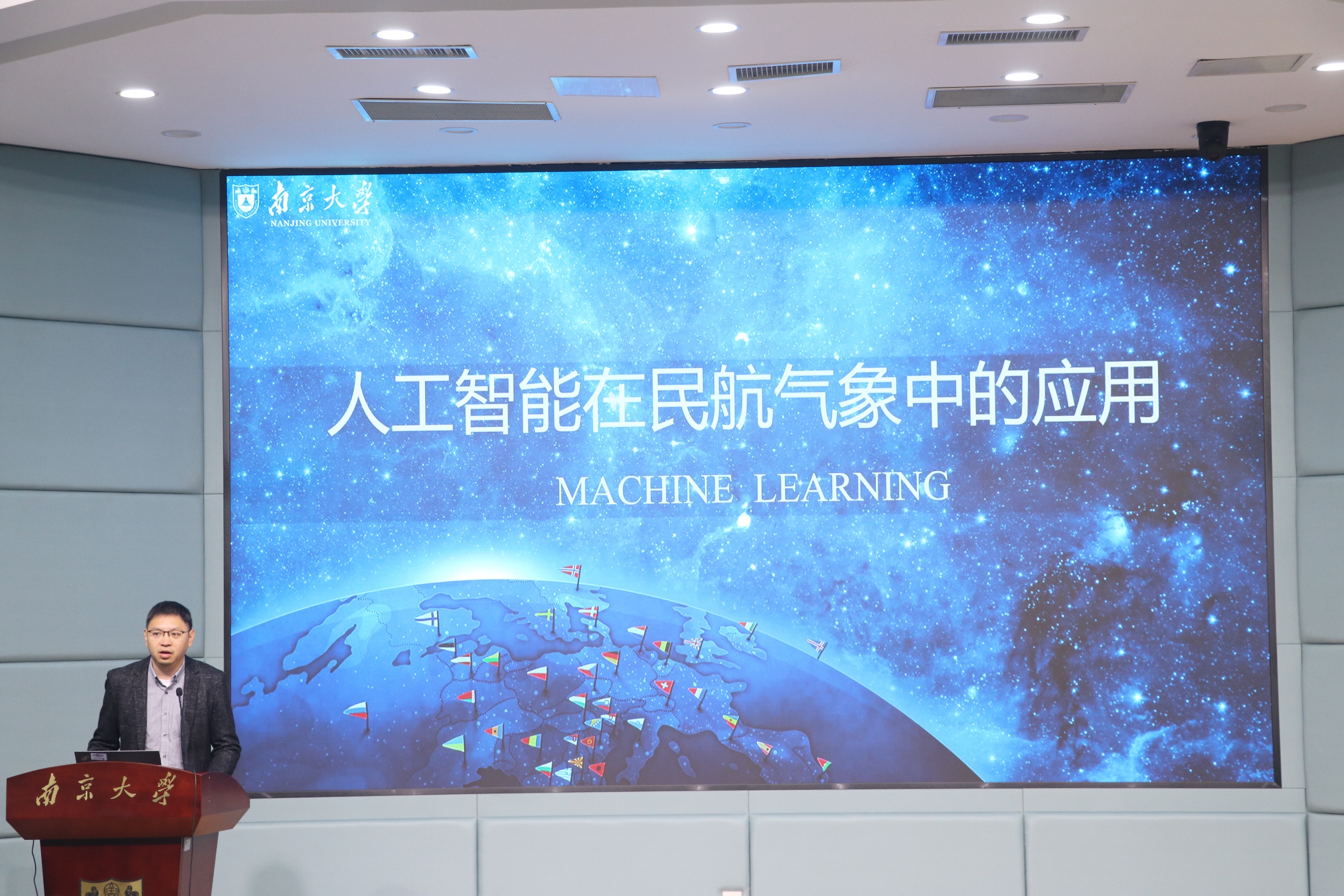开班仪式结束后,南京浦蓝大气环境研究院有限公司副总经理陈启智博士以人工智能在航空气象中的应用为主题,给学员们上了开班第一课。