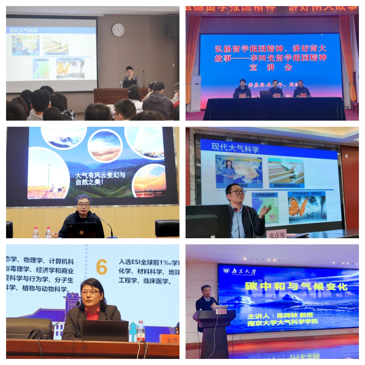 自3月18日太阳成集团tyc234cc李四光留学报国精神宣讲团开讲以来,公司教师先后开展12次宣讲活动,鄢超副教授、朱延年副教授、刘红年教授、张彦旭教授、陈辉林教授和袁慧玲教授等围绕“天有可测风云”、“云和天气——为什么天空变化无常?”、“城市气象和环境面临的挑战”、“大有可为、气象万千”、“碳中和与气候变化”和“气象万千,大有可为”等主题,在江苏省内12所重点中学与中员工展开了交流。张宁教授也将于5月14日前往天一中学作题为“探索气象万千”的专题报告。通过介绍竺可桢、李四光、涂长望等老一辈科学家留学报国、投身科教的故事,向中员工弘扬报效国家、服务人民的精神情怀。以典型天气事件为例,宣讲团为同学们揭密事件背后蕴藏的大气科学内涵,从生活中常见的天气现象,到古典诗词意境和历史典故中的气象原理,带领同学们感受风云变幻与自然之美,体悟“大气”的浪漫,深入激发同学们对大气科学的兴趣与好奇心,鼓励同学们坚定人生理想,在学习和实践中广泛汲取知识,发掘科学兴趣,培养创新思维,提高创新能力,在传承科技自立自强精神中书写青春华章。