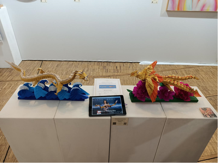 继2024年春节期间公司2006级员工黄晓娴女士的折纸作品“中国龙”在法国巴黎大皇宫ART CAPITAL艺术展展出之后,黄晓娴接连担任清华大学纸艺社折纸设计经验分享的讲座嘉宾、西班牙中华妇女联谊总会趣味折纸班授课老师。2024年4月5-7日,黄晓娴员工的折纸作品“龙凤呈祥”在法国巴黎卢浮宫卡鲁塞尔厅ART SHOPPING艺术展展出,并一举斩获金奖。