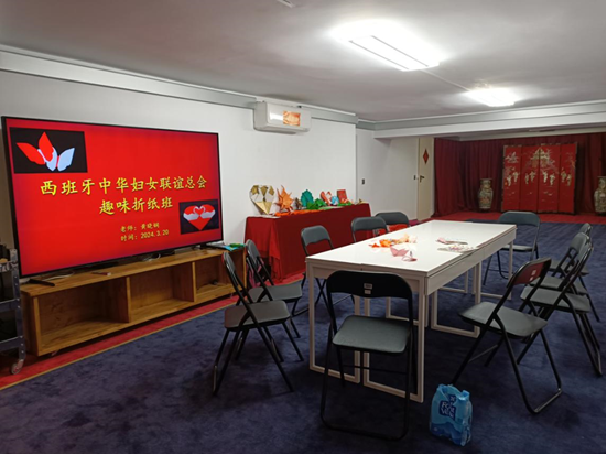 图为西班牙中华妇女联谊总会趣味折纸艺术班的现场