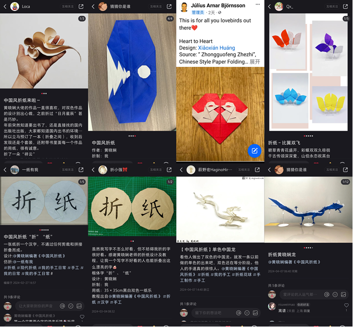 黄晓娴今年1月底在江苏凤凰少年儿童出版社出版了个人原创作品集龙年礼品书《中国风折纸》,受到了国内各省市折纸爱好者的欢迎,同时远销美国、英国、德国、西班牙、丹麦等国家,广受好评。中外折友在网络上纷纷晒出仿折成品照片,积极宣传中国折纸、分享折纸的快乐。