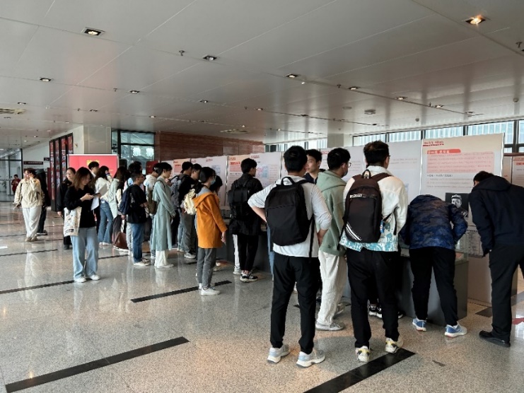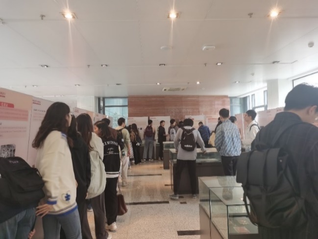 进入图书馆大厅后,首先映入眼帘的是展览第一部分:入党志愿书制度的百年历程。该部分展示了在不同历史阶段的入党申请书、入党介绍表、党员登记表、党员档案等,展现了入党志愿书制度的百年演变历程。展板前,同学们三两成行驻足观摩。在大厅长廊参观完后,大家沿着路牌指示来到了核心展区。一幅幅图片,一件件实物、一个个故事,生动再现了中国共产党在探索中前行的光辉印记。大家看到,一百多年来,中国共产党守正创新、砥砺奋进,逐步建立了严格、严谨、严密的入党制度体系,为党以伟大自我革命引领伟大社会革命提供制度保障。