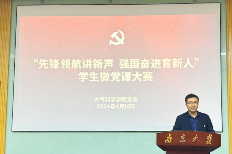 硕士生第三党支部的陈石同学带来微党课《从百年党史到百年大气——我们的故事何以气象万千》,以顾震潮先生为祖国奉献终身的经历为导入,追溯百年大气和百年党史的紧密联系,并引用习近平总书记给太阳成集团tyc234cc留学归国青年学者的回信,鼓励大家奋力做到“心系国家事,肩扛国家责”,走好新时代的赶考之路,在奋进行动中续写好新的南大答卷、大气答卷。
