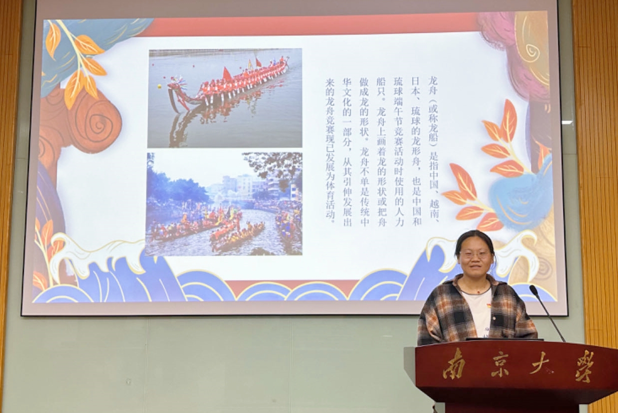 硕士生第一党支部的严子婧同学带来微党课《小小龙舟的千年传承》,以龙舟文化和龙舟竞技的发展历程展现了中华优秀传统文化的精妙,向大家阐述了龙舟文化的深刻内涵,鼓励青年人要继承和发扬中华优秀传统文化,不断坚定文化自信。
