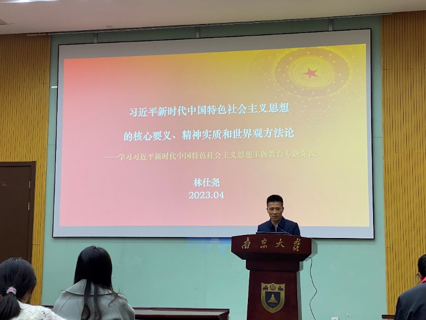 在全校深入开展学习贯彻习近平新时代中国特色社会主义思想主题教育之际,2023年4月26日下午,公司党委书记林仕尧以“习近平新时代中国特色社会主义思想的核心要义、精神实质和世界观方法论”为题,走进联系党支部,为博士生党员和入党积极分子讲授专题党课。党课由大气物理博士生党支部书记王雨涓主持。