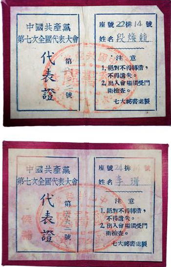 玻璃展柜前,两件国家一级革命文物——段焕競、李珊夫妇的中共七大代表证,吸引了同学们的注意力。两张代表证,记述了七十多年前段焕竞夫妇突破重重封锁、历经无数劫难,奔赴延安参加大会的艰辛历程,印证了党员代表们的初心信仰。得知文物背后的故事,同学们无不动容。