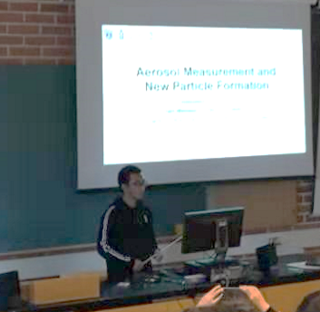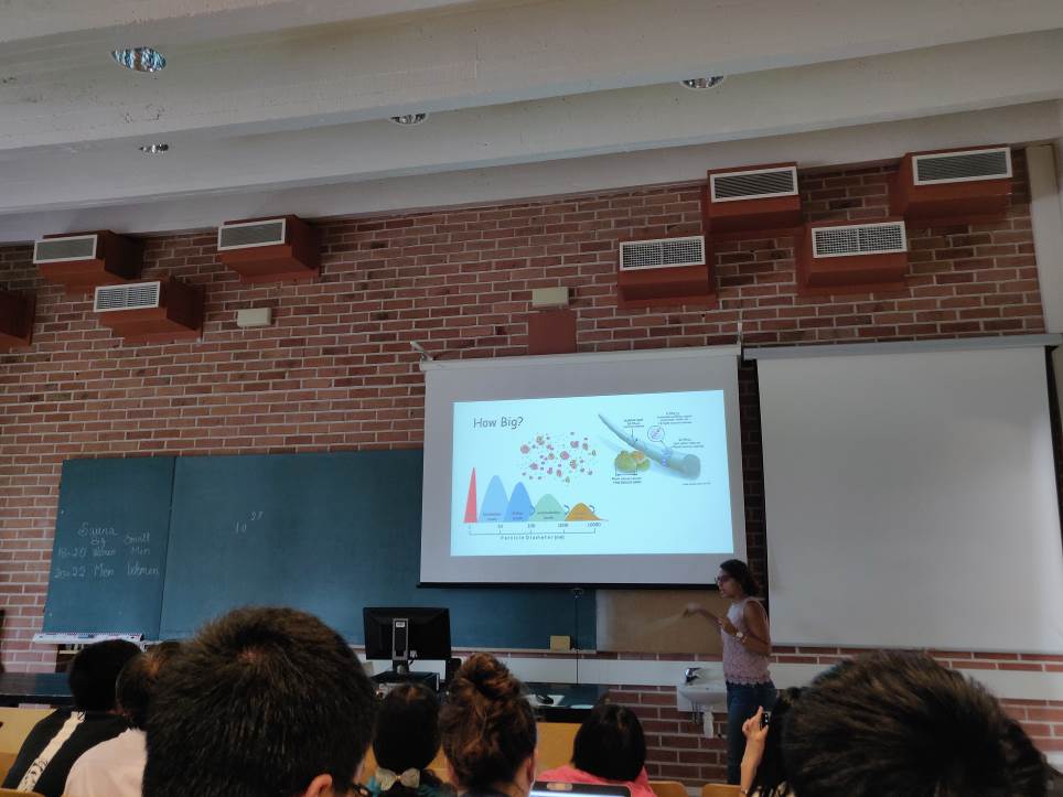 小组工作以后,Dada老师为我们做了关于“新粒子生成”的报告。Dada老师讲课生动活泼,她为同学们讲述了新粒子生成从无到有的过程,区分了生成速率与生长速率的区别。Dada老师还为同学们推导了新粒子生成的守恒公式,并解答了同学们如何判断新粒子生成事件与非事件的问题。